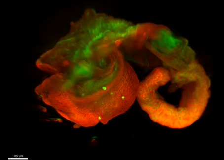 Pour dépasser cette limitation, une clarification tissulaire basée sur la technologie X-Clarity a été mise en œuvre, permettant l’observation du mollusque dans son intégralité et la détection des parasites fluorescents dans le mollusque. La localisation de protéines impliquées dans la réponse immunitaire, telles que la biomphalysine, associée à des structures glandulaires tubulaires jusqu’alors non décrites, a également été rendue possible.